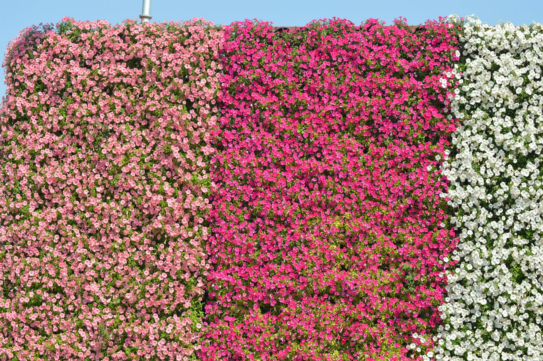 - Summer peak: Roses, passion flower, morning glory, calibrachoa in wall pockets